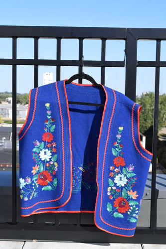Vintage Handmade Blue Floral Embroidered Vest