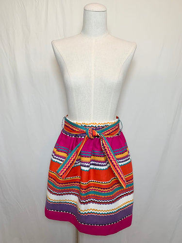 1970's Multicolor Zig Zag Belted Mini Skirt