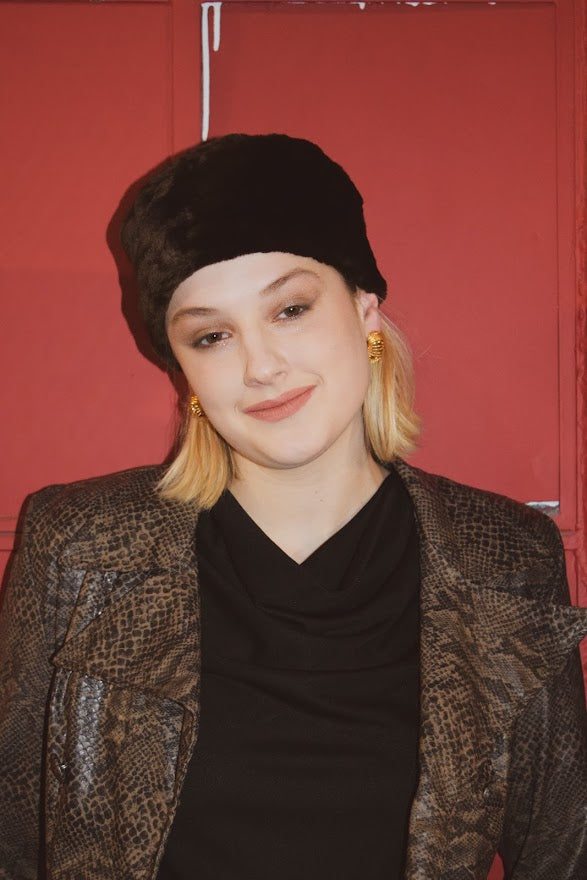 1980's Cowl Neck Black Short Sleeve Dress by Strait Lane. Knee Length.