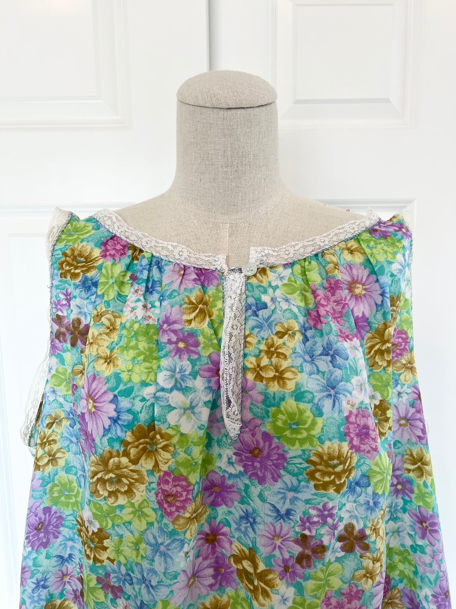 Semi-sheer floral nightgown. Great for lounging or wearing to your favorite summer activities.