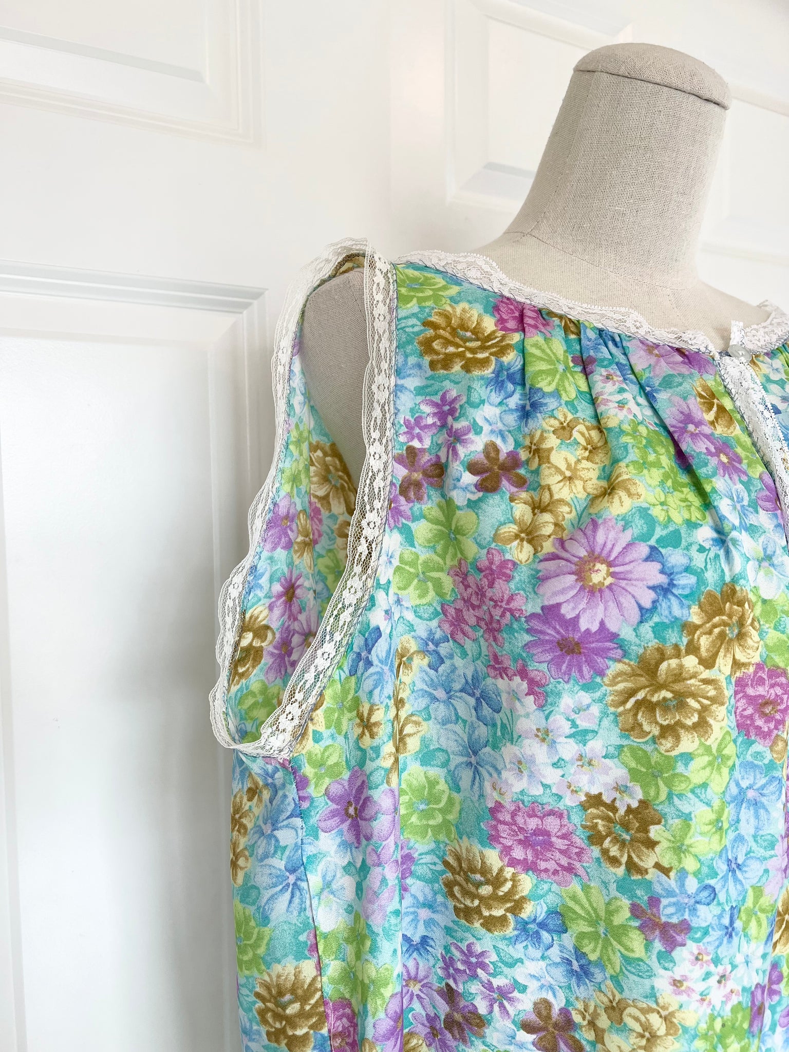 Vintage Sleeveless Floral Lace Trim Nightgown